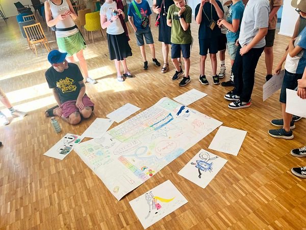 Gemeinsam überlegten wir, wie wir unseren Schulhof gestalten könnten: Welche Orte wünschen wir uns zum Spielen, Entspannen oder kreativen Arbeiten? Mit vielen Ideen, Skizzen und Diskussionen entstanden erste Visionen, wie ein Schulhof aussehen könnte, der für alle da ist und den Teamgeist stärkt.