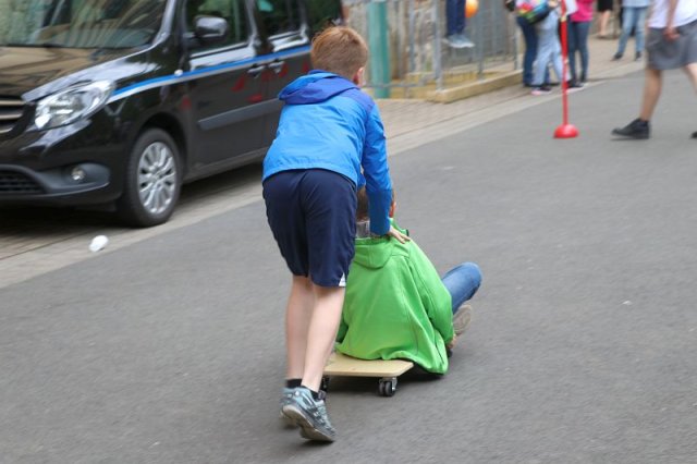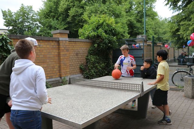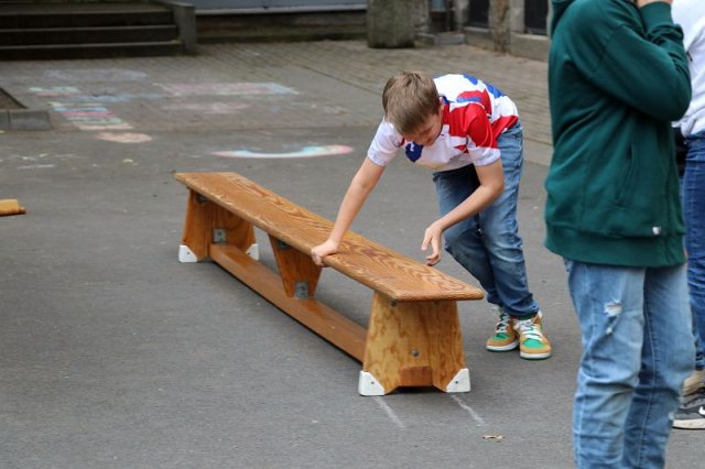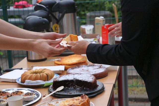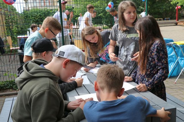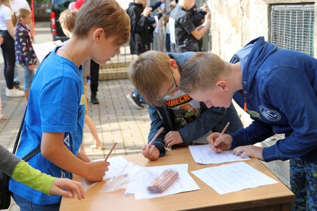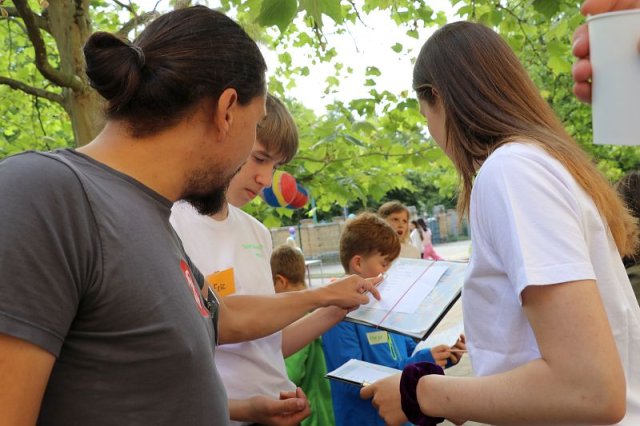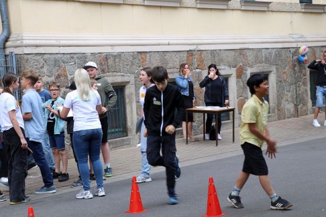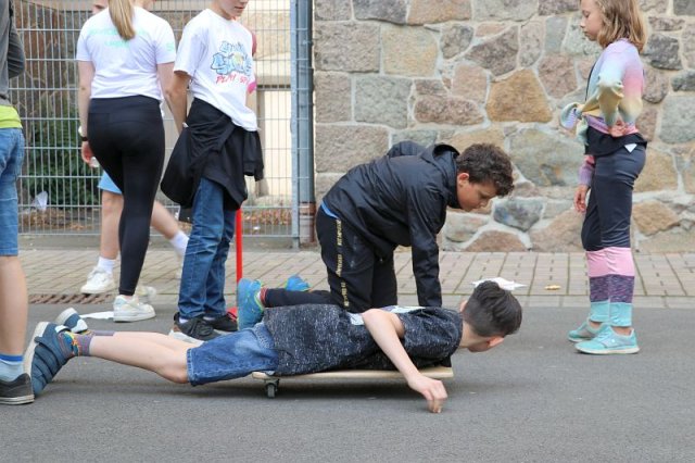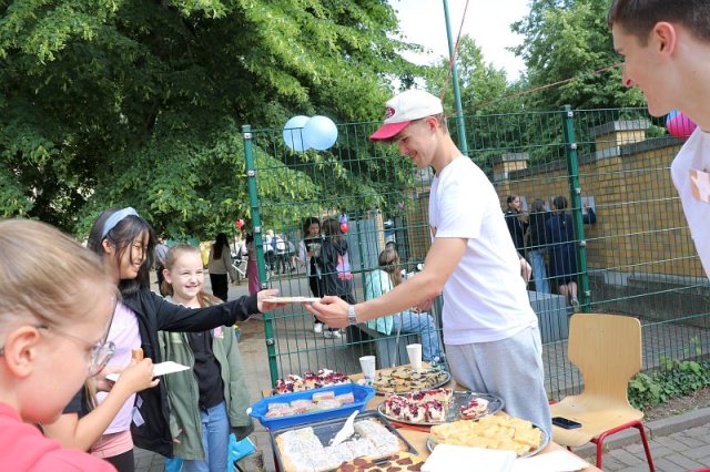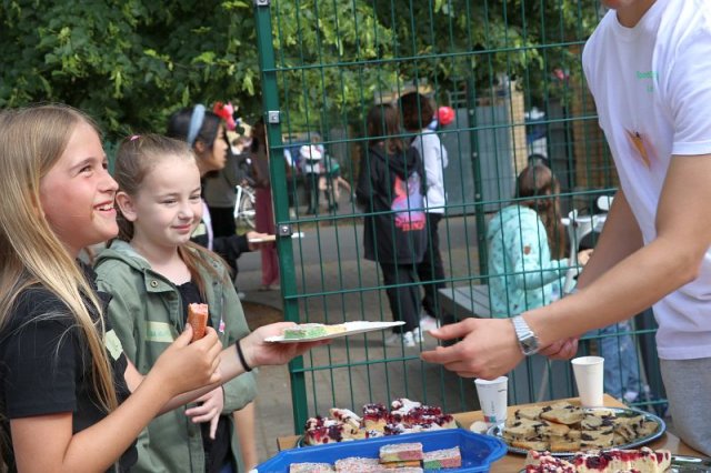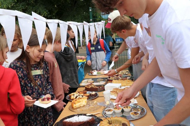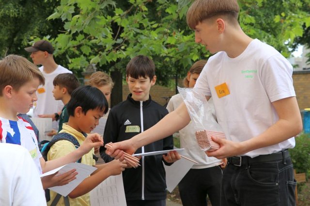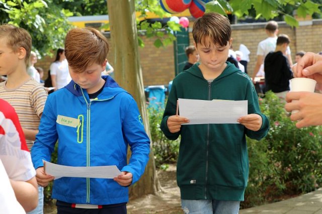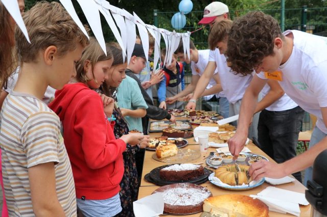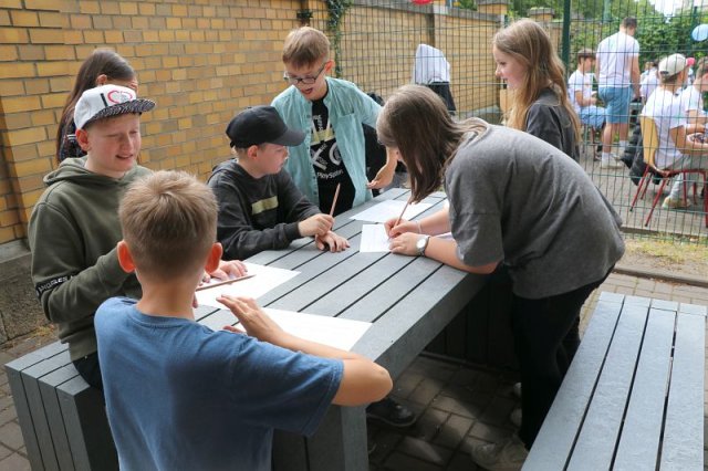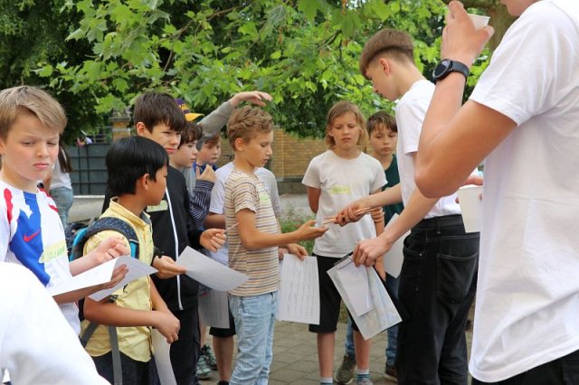 Zuerst erhielt jeder zukünftige Fünftklässler als Begrüßungsgeschenk einen extra gravierten Willkommensbleistift. Nach dem Kennlernbingo gingen wir auf Schulhausralley, starteten über den Parcours, bastelten Steckbriefwimpel und Anti-Stress-Bälle. Zwischendurch stärkten wir uns alle mit Apfelschorle, kaltem Tee und, nicht zu vergessen, selbstgebackenem Kuchen, den Eltern und Lehrer unserer Schule gebacken hatten.