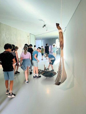 Nach einer spannenden und sehr besonderen „stillen Führung“ durch die Ausstellung – bei der wir Kunstwerke nicht nur betrachteten, sondern vor allem still wahrnahmen und auf uns wirken ließen – ging es in einen kreativen Workshop. Hier drehte sich alles um Teamgeist und Zusammenarbeit.